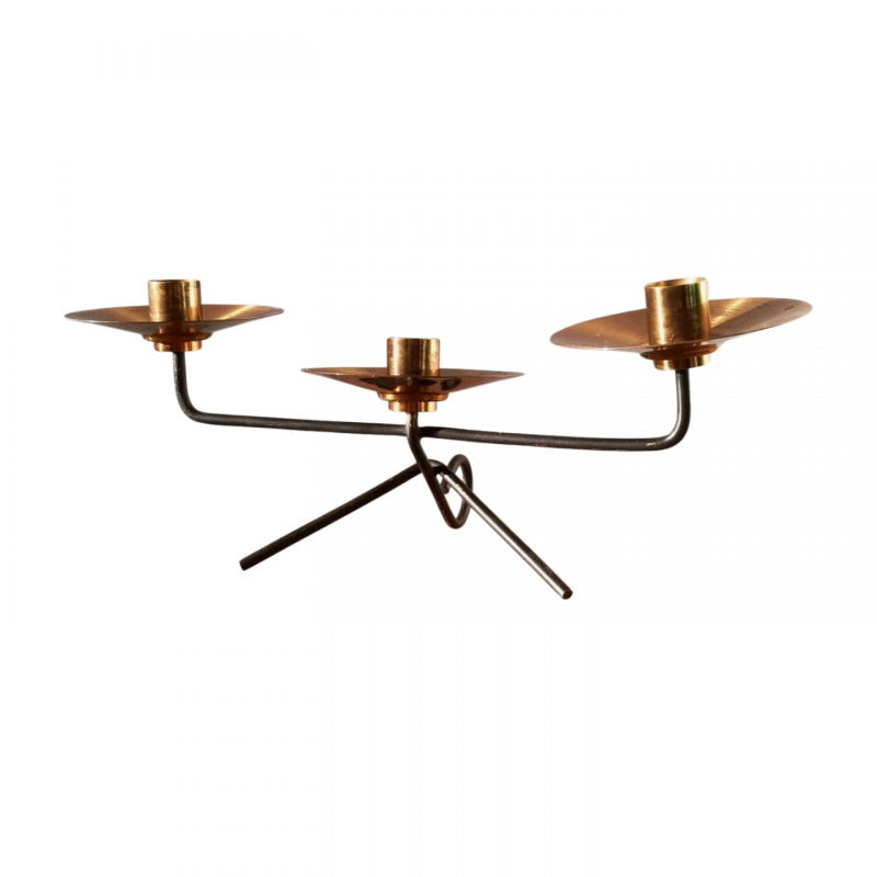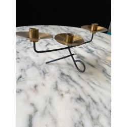 Joli bourgeoir triple coupelles laiton et fil de laiton peint noir. Ligne épuré moderniste. Bon état général avec traces d'usages.