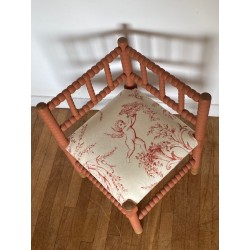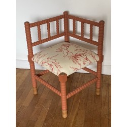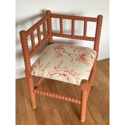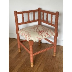 Chaise de coin en bois tourné perlé ancienne des années 50.