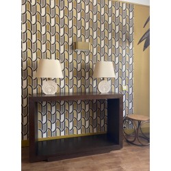 L’atelier quai 69 vous propose cette jolie lampe en travertin des années 70/80 avec son abat-jour d'origine. L’ensemble est en très bon état général. Lampe de la maison Le Dauphin dans le goût des productions Fratelli.