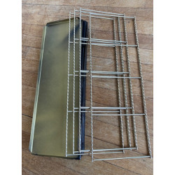 Ensemble d’étagères dans le style String. Les supports sont en fil d’acier doré torsadé et les plaques sont noires brillantes. Plusieurs configurations possibles.